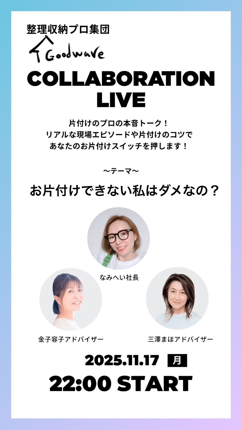 📅 現役アドバイザーのお片付け談義を配信中!