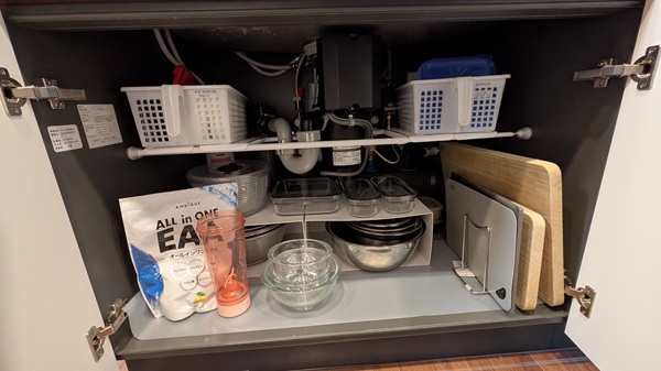・シンク下は配管が多く、収納レイアウトが難しい構造